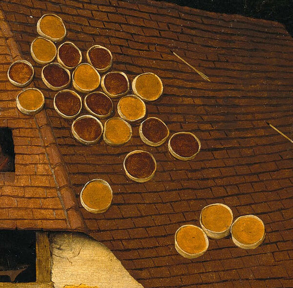 Будучи истинным новатором в искусстве Северной Европы, Питер Брейгель Старший, «опираясь на традиции книжной миниатюры, пишет большую, большеформатную масляную картину, точнее, картины в данном случае, то есть он радикально меняет масштаб». [4] Это делает смысловую наполненность художественного произведения более широкой, становится важным разглядывать мельчайшие детали, которые помогают сильнее замечать взаимосвязь между человеком и его окружением.