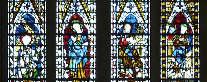 Сара Браун в исследованиях витражей Йоркского собора подчёркивает, что изображения апостолов формировали визуальный канон церковного авторитета и преемственности [3]. Витражи со святыми носили локальную специфику: каждая община стремилась включать своих святых покровителей (например, английских королевских святых), что подтверждается структурой восточных окон Йорка.