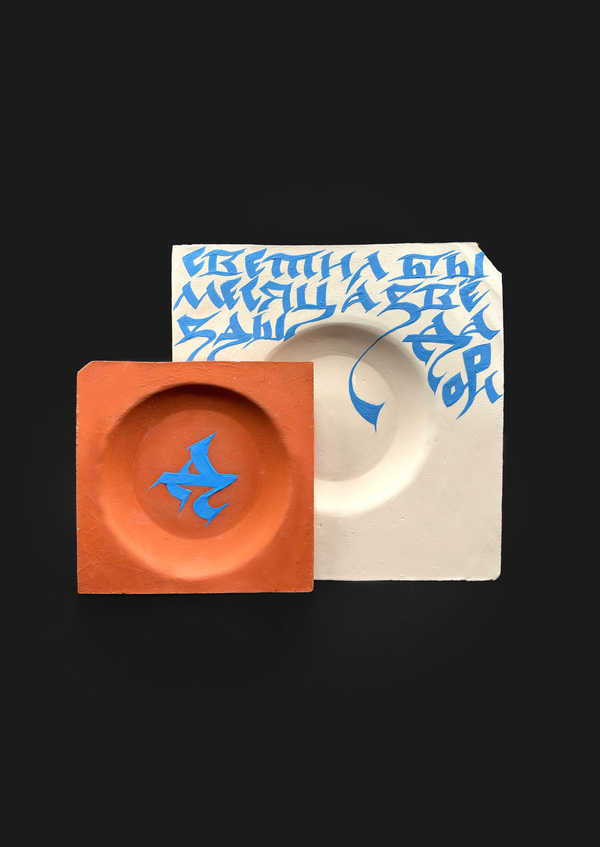 Проект объединяет искусство каллиграфии и керамику. Для работы были созданы тарелки из белой и красной глины: форма напоминает одновременно и лист бумаги, и привычную посуду. Такой образ объединяет письмо и предмет быта. В росписи использована русская письменность — полуустав. В качестве текстов выбраны редкие пословицы и поговорки XVI–XVII веков, чтобы через каллиграфию передать дух старинного языка и ощутить связь с культурным прошлым.