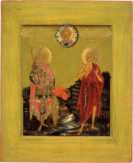 Провинциальные произведения XVII века, вошедшие в собрание, имеют, по большей части, поволжское и северное происхождение. Среди них такие классические и яркие примеры локального иконописания, как ярославский образ «Князья Борис и Глеб» (кат. 9), близкая ему по стилистике небольшая икона «Царевич Димитрий и князь Роман Угличские» (кат. 10), созданная, очевидно, в самом Угличе.