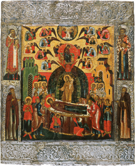 Успение Богоматери, с избранными святыми на полях (в окладе)