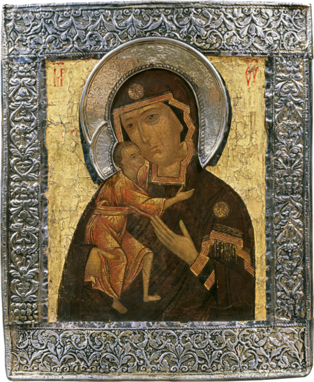 Икона — конец XVI — начало XVII века. Москва (?). Оклад — XVII век. 38×32 см. Дерево, левкас, темпера; серебро, басма, гравировка, золочение. Происхождение неизвестно, приобретена в Москве. Реставрирована до поступления в собрание.