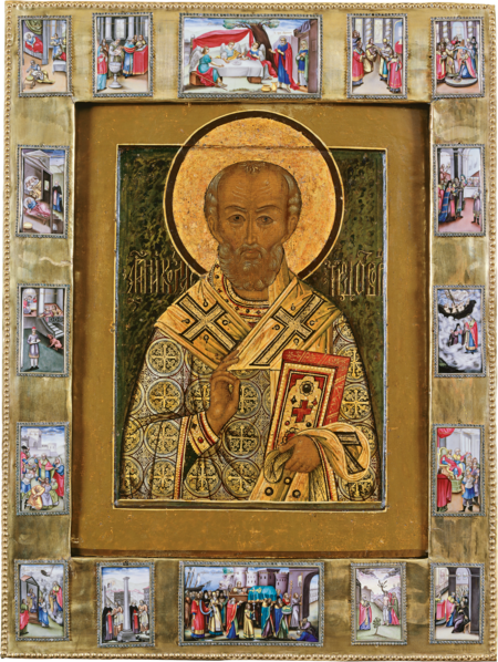 Святитель Николай Чудотворец, в раме с клеймами жития