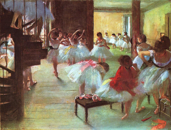 Произведениям Дега свойственна строго выверенная и при этом динамичная композиция, неожиданные ракурсы, активное взаимодействие фигур с пространством, случайность мотива в сочетании с тщательной продуманностью архитектоники картин. Все это становится важными характеристиками импрессионизма как направления.