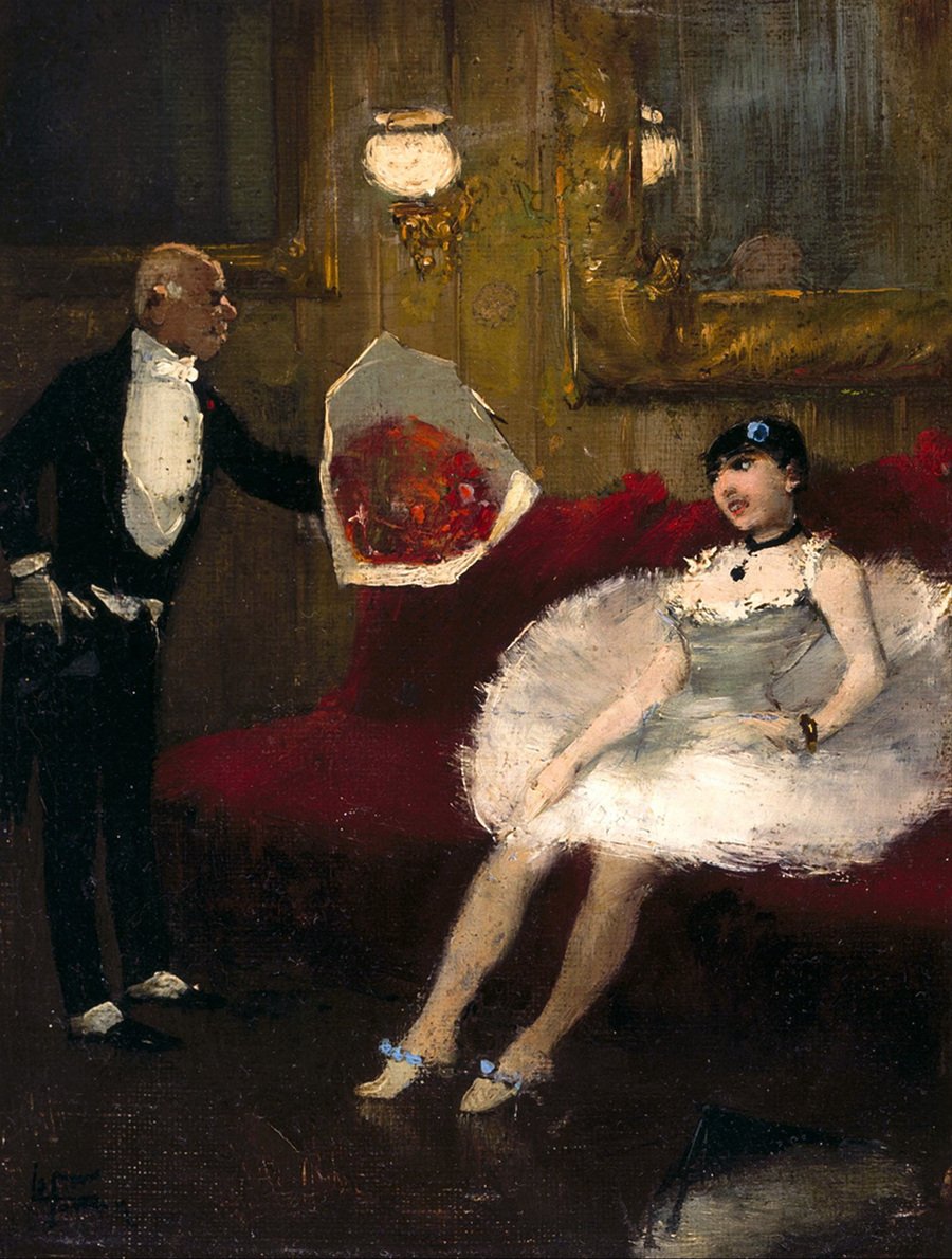 Клео де Мерод писал и другой импрессионист — Жанн-Луи Форен: «У Форена сеансы позирования тоже проходили очень приятно. <…> Очень занимательно было слушать, как господин Форен описывал кого-нибудь тремя словами так же точно, как рисовал портрет, добиваясь сходства всего несколькими мазками». [1] Как и у Дега, точно фигуру Клео де Мерод в работах Форена определить нельзя. Но можно проанализировать манеру, в которой художник изображал танцовщиц, в том числе Клео де Мерод. Его работам свойственны общий этюдный характер композиции, широкие мазки, пастозность, темный колорит, резкие светотеневые контрасты, а порой и отзвуки романтизма.