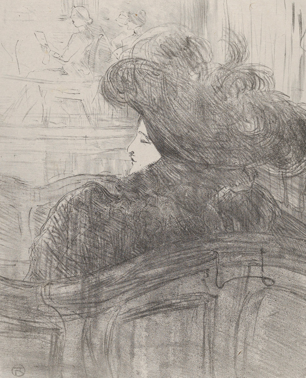 Сохранилась и литография Лотрека с Клео де Мерод. Этой работе также свойственны ограниченная цветовая палитра и динамичность линий. Фигура изображена вполоборота, что добавляет ей загадочности.