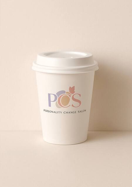 ПРОМТ в ideogram: Branded coffee cup mockup for PCS — Personality Change Salon, minimal pastel design, clean modern shape, smooth logo print, same visual style as the general reference. Branded tote bag mockup for PCS — Personality Change Salon, soft pastel tones, elegant minimal logo placement, photographed on a neutral background, same style as the general reference.