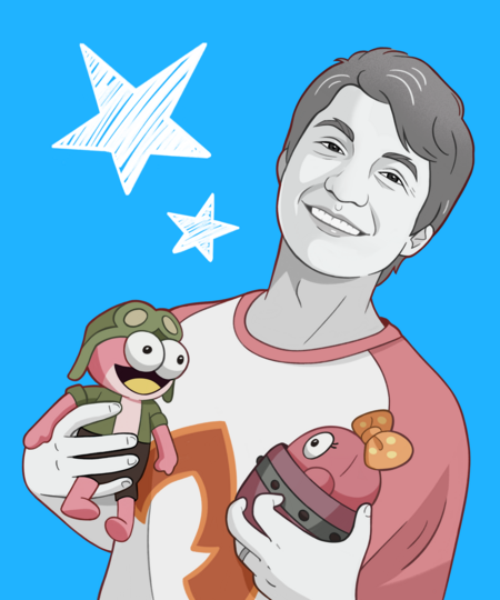 Портреты авторов хитовых мультсериалов Disney Channel в окружении игрушек их персонажей.