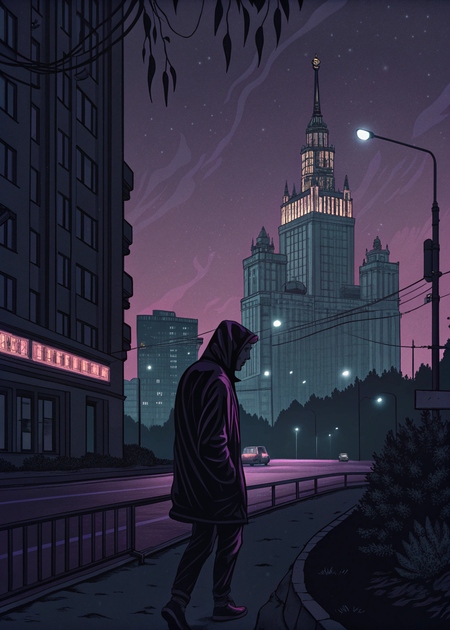 Recraft.ai увидел русский реп, как неоновый ночной город, однако местами довольно грязный и пугающий своими пустыми улицами. Я думаю, это хорошее отображение такой музыки.
