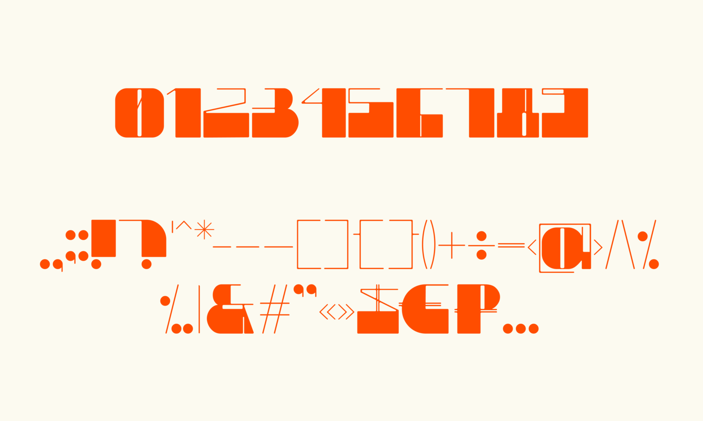 Особенности шрифта — обратный контраст, вариативность внутрибуквенного пространства, плотный спейсинг.