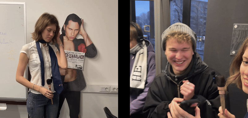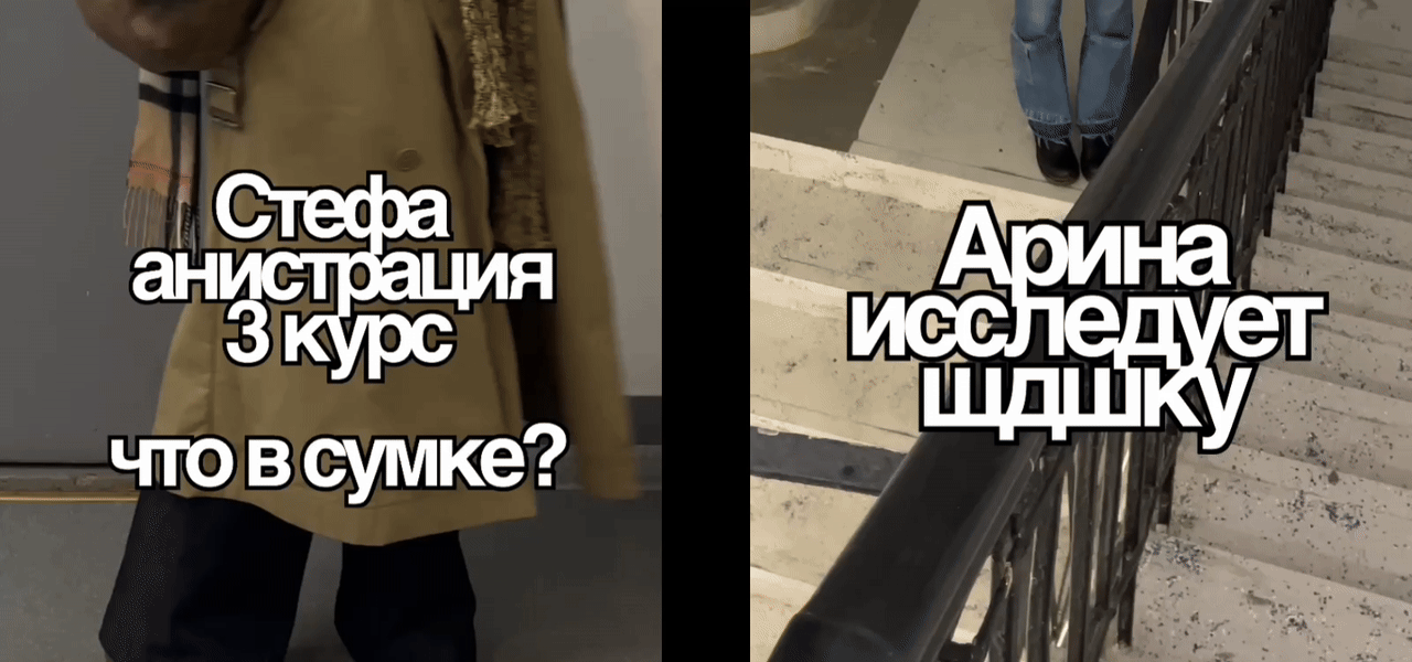 видео со студентами: в контексте шд студенты очень подвижные, почти неуловимые > видео с ними имеют элементы уличных интервью, на фоне этого появляется контраст когда мы переключаемся с внезапного допроса в коридоре на личный монолог