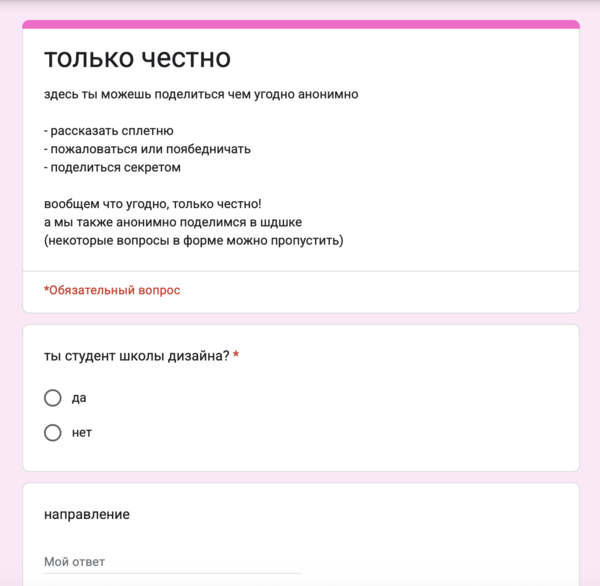 анонимная форма в которой можно рассказать о чем угодно, пожаловать, поябедничать или поделиться сплетней