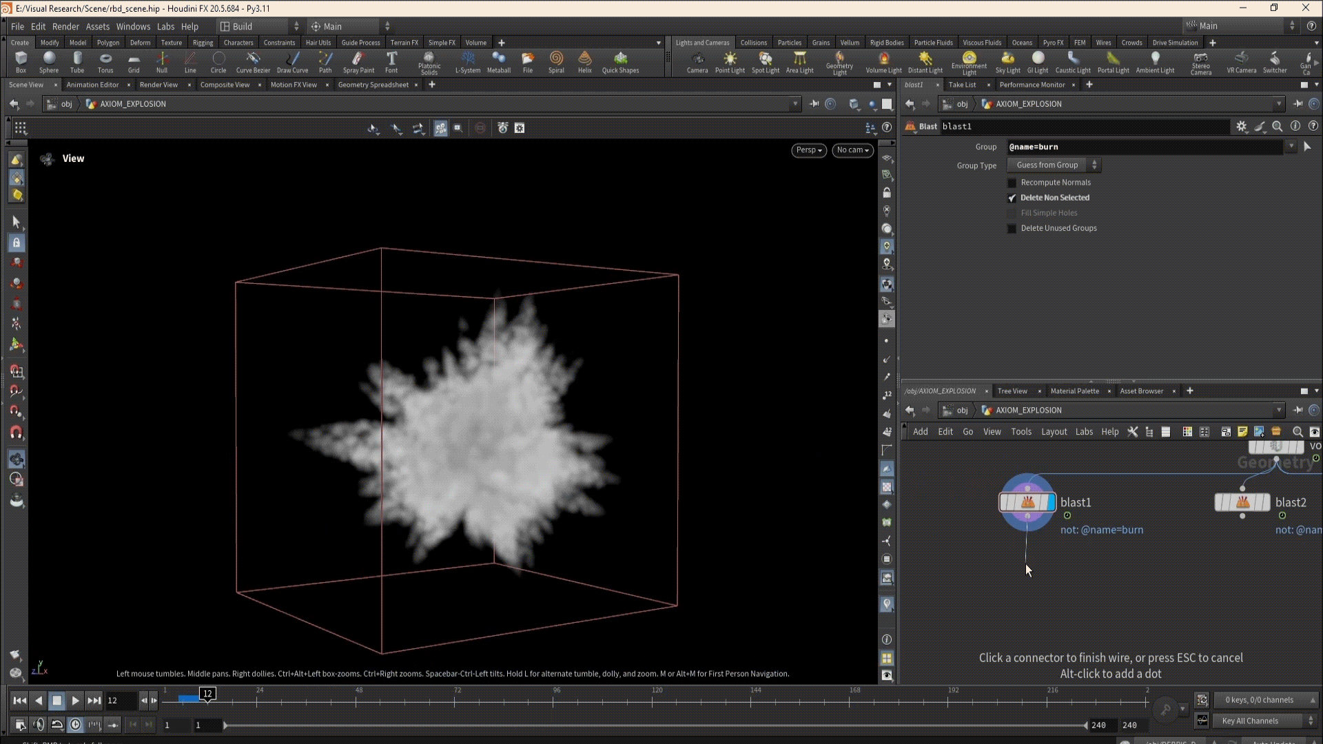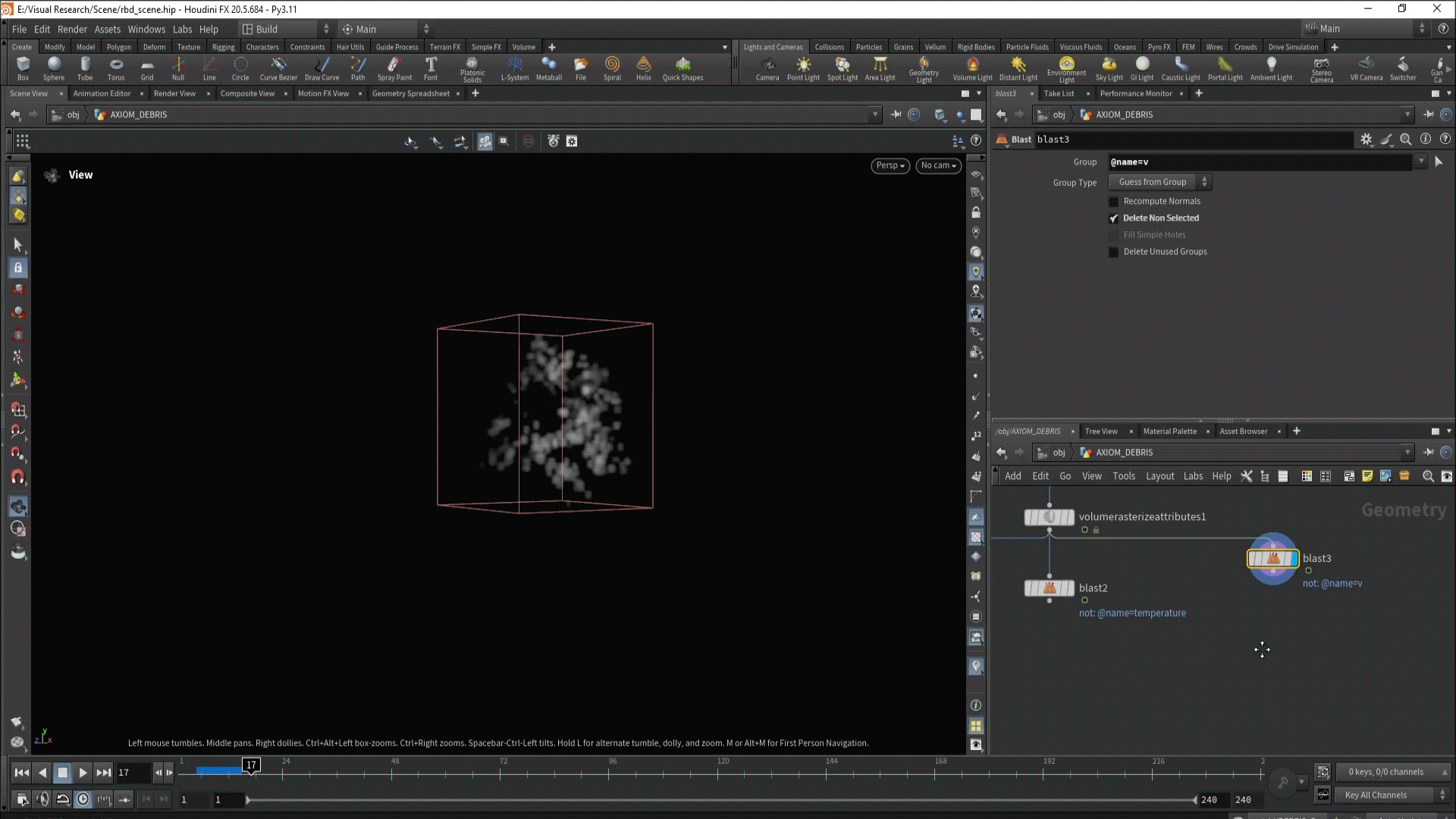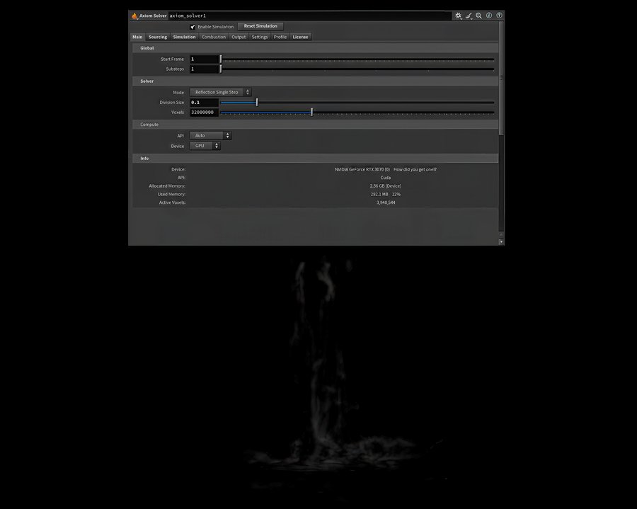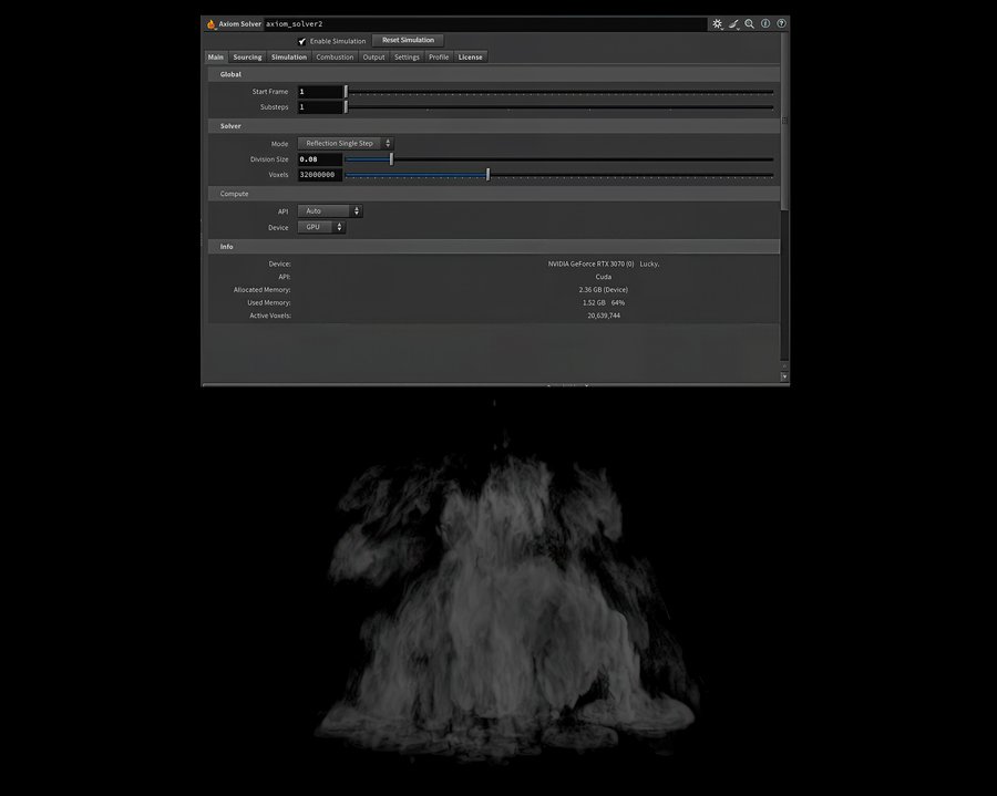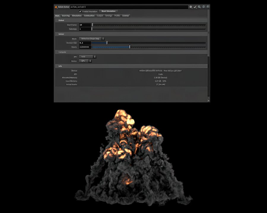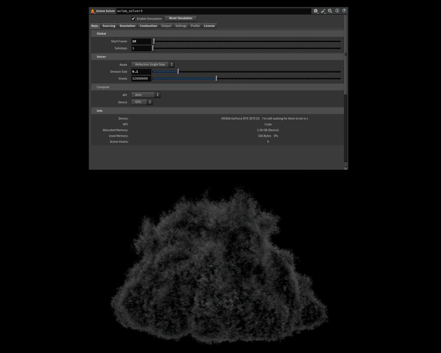 В Axiom использована та же коллизия, что и в Pyro, однако она была создана с использованием узла «vdb from polygons» и переименована. Для повышения эффективности рабочий процесс был оптимизирован путем предварительного кэширования.