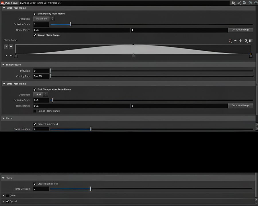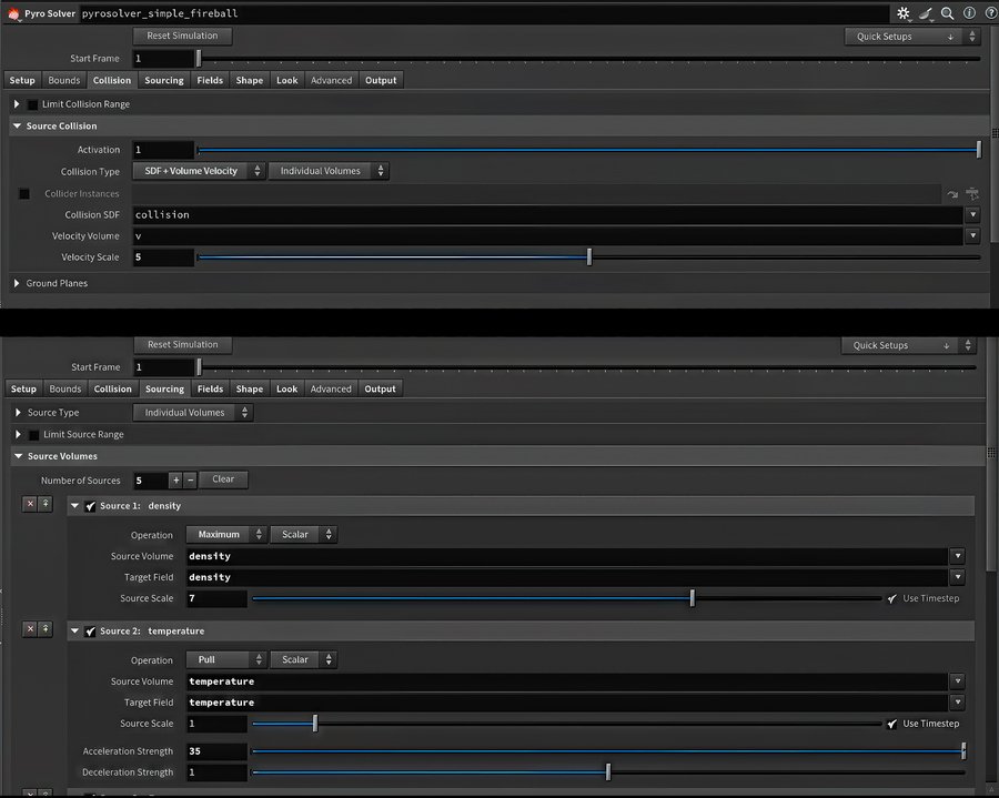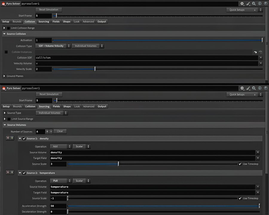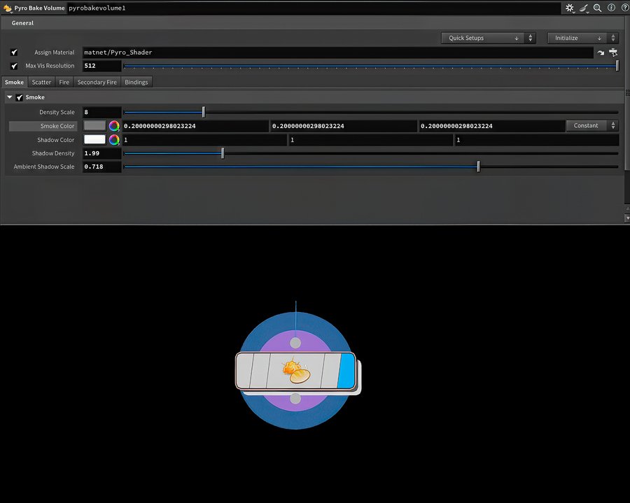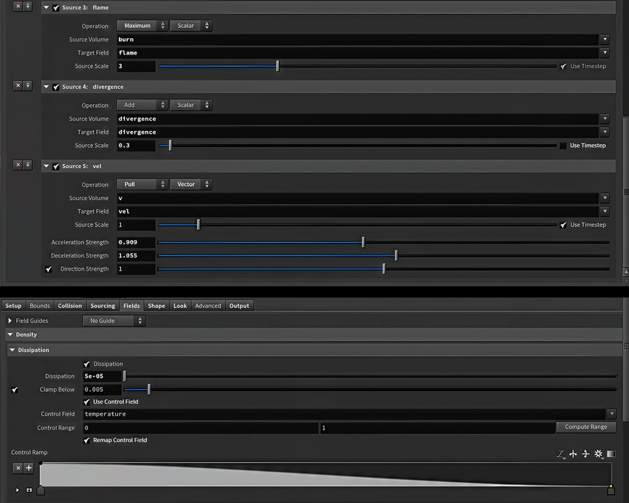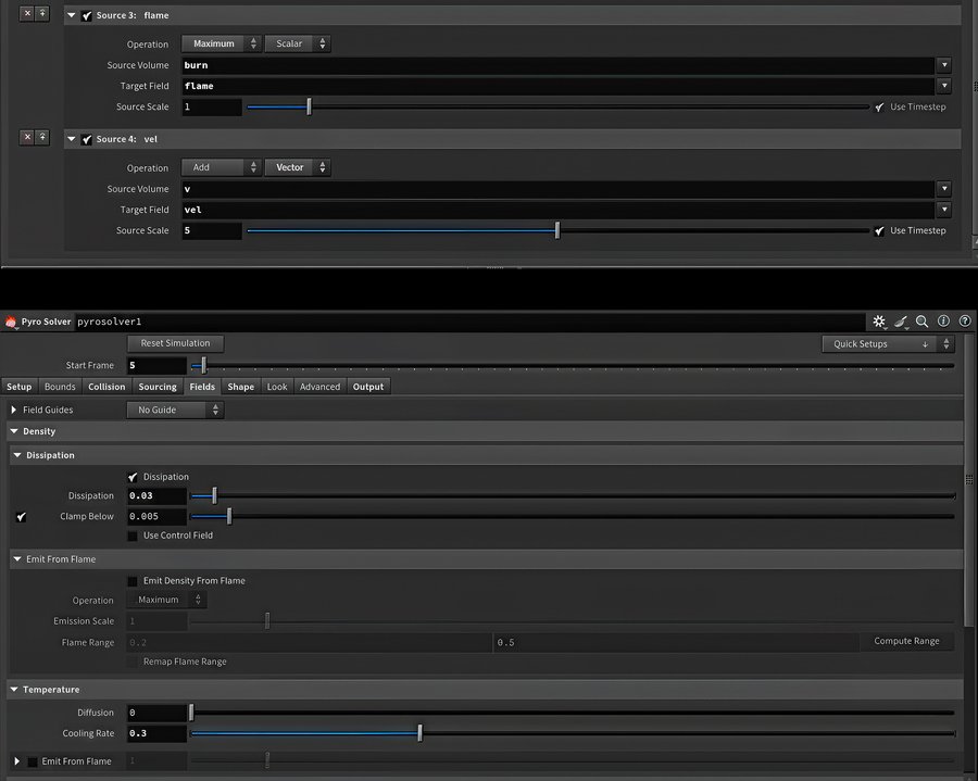 Через инструмент «Pyro Source» становится возможным инициализировать основные атрибуты, необходимые для корректного выполнения симуляции дыма, а также последующей растеризации требуемых полей.