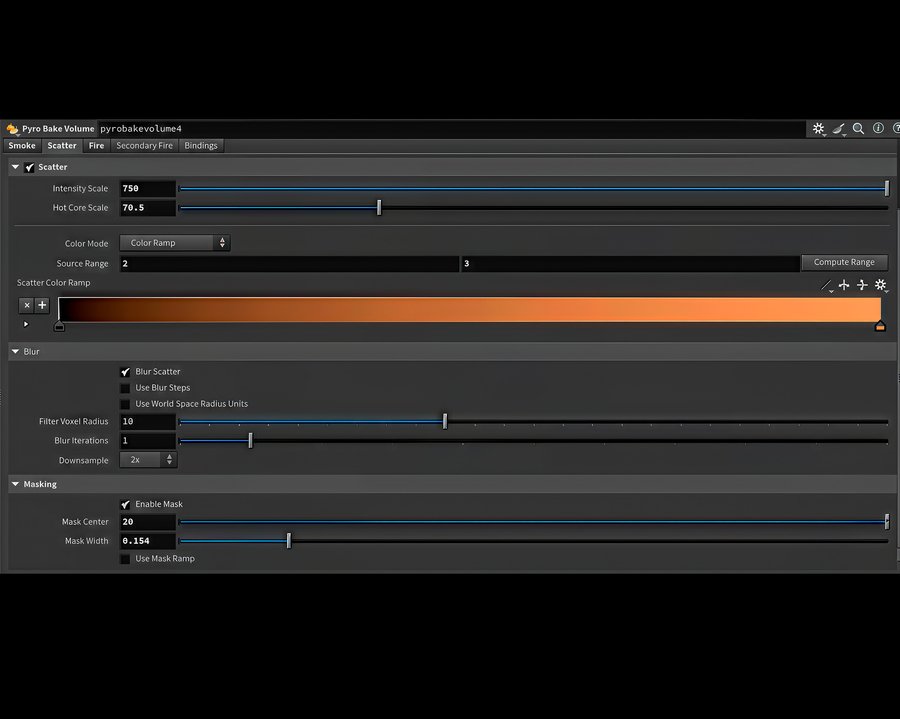 Настройки «pyro bake volume» такие же, что и в изначальных параметрах.