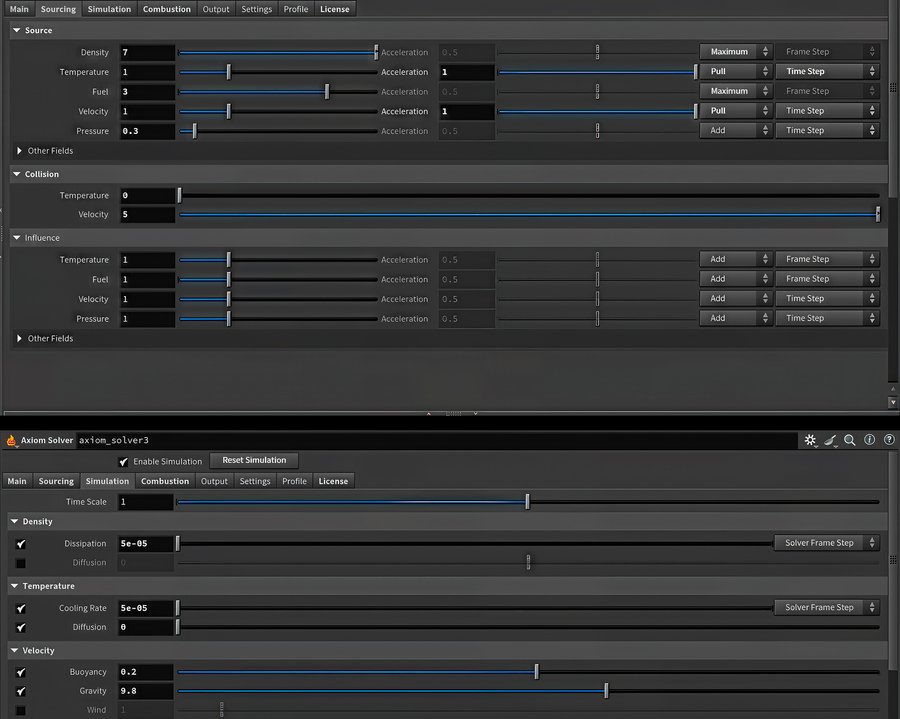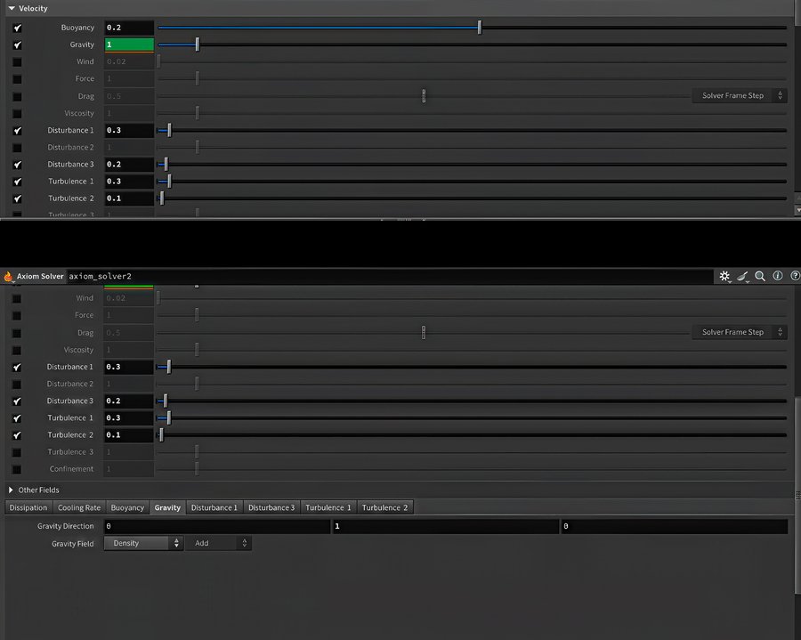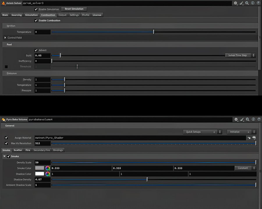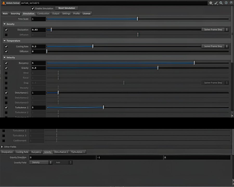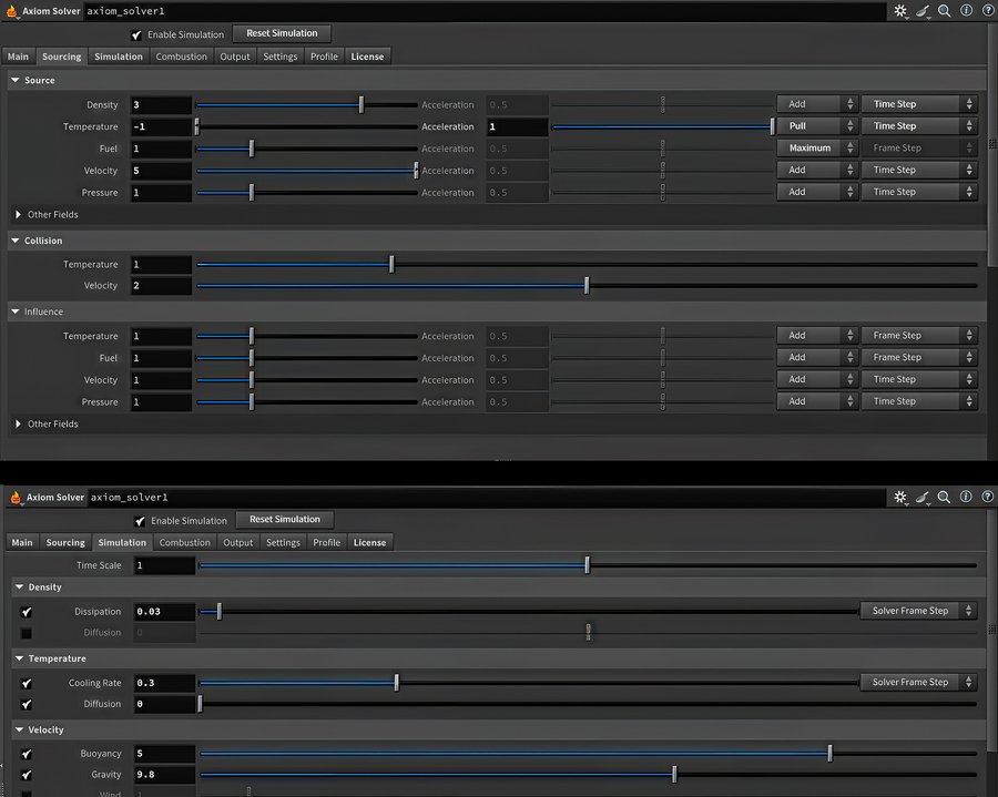 После вышеперечисленного, нужно создать ноду «axiom solver» и ввести параметры, которые были введены в Debris Pyro.