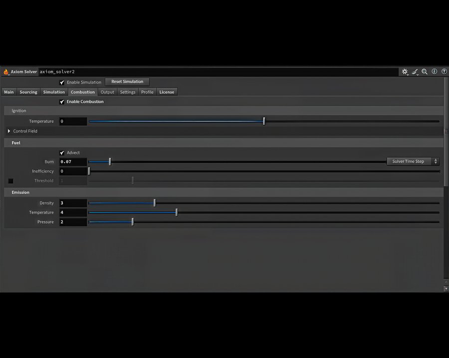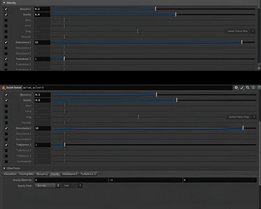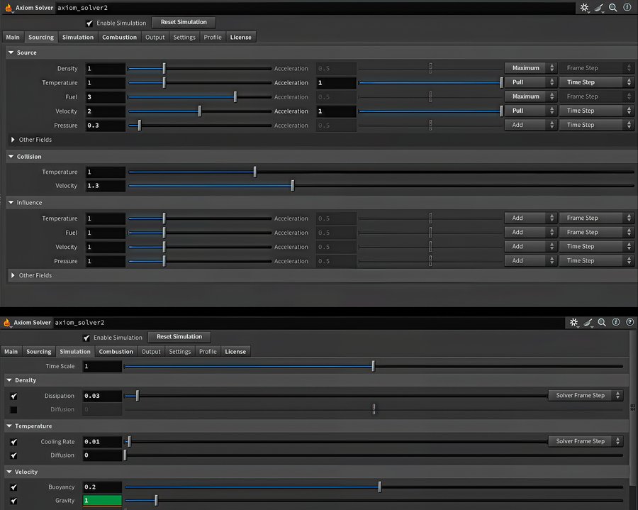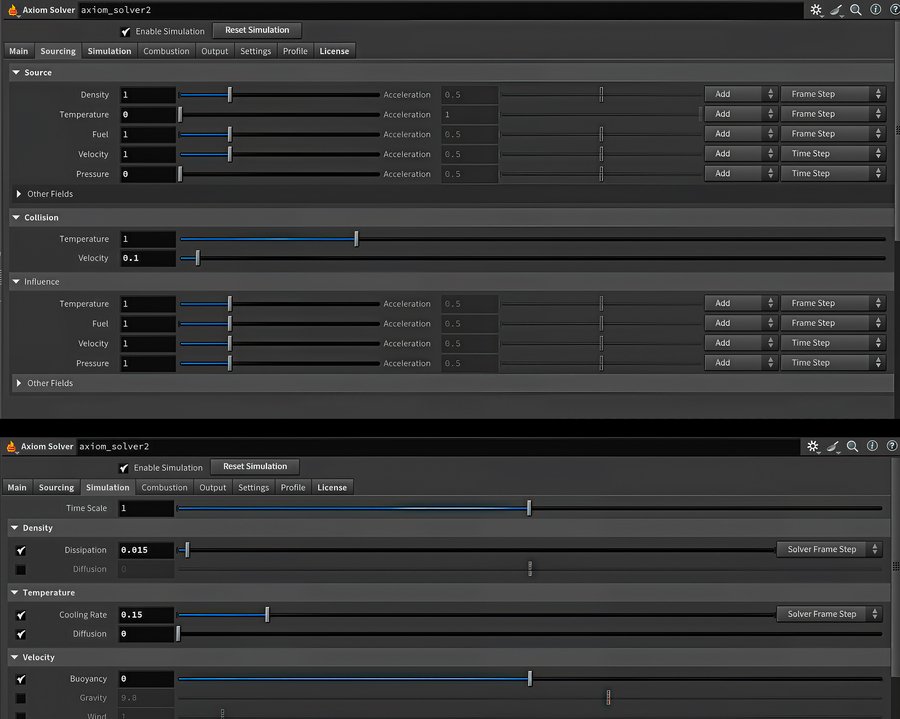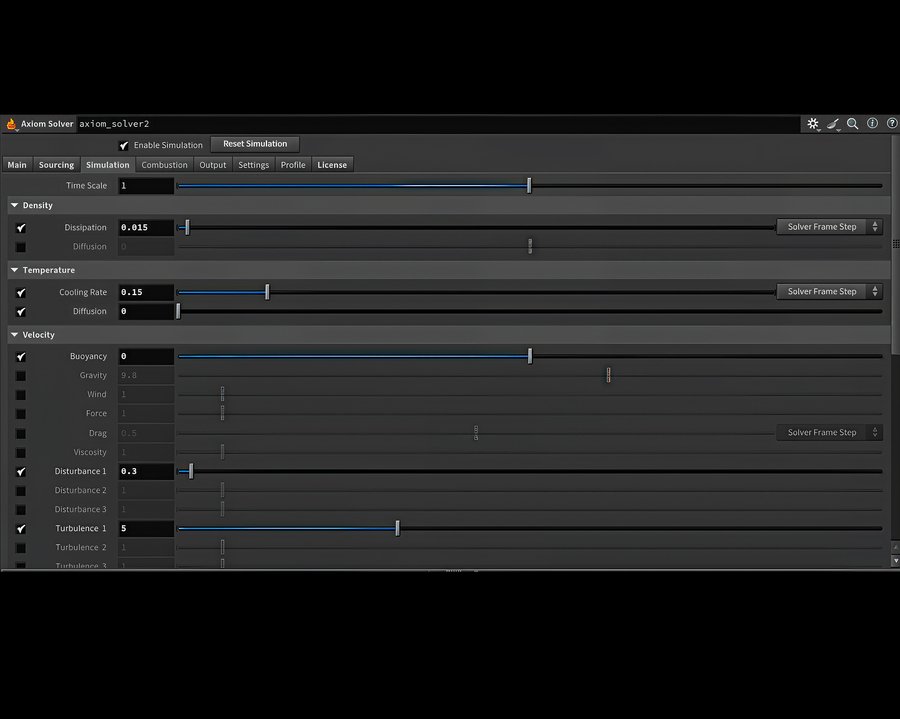 После вышеперечисленного, нужно создать ноду «axiom solver» и ввести параметры, которые были введены в Debris Pyro.