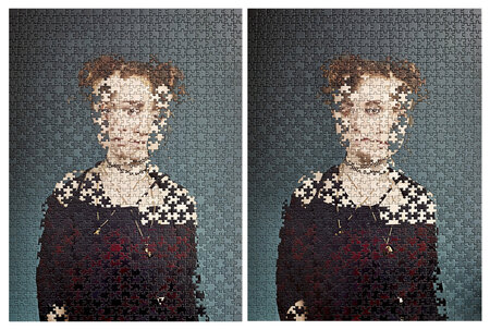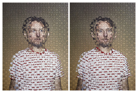 Работая с принципом схожести, она раскрывает его на более сложном уровне, иллюстрируя, как визуальная идентичность рассыпается на части и собирается заново, создавая два новых лица, формально состоящие из одинаковых частей, но при этом не совпадающих ни с оригиналом, ни между собой. Этот жест намеренно разрушает идею сходства, позволяя рассмотреть ее изнутри.