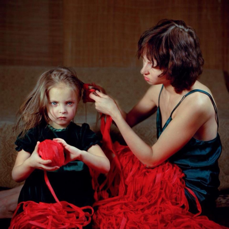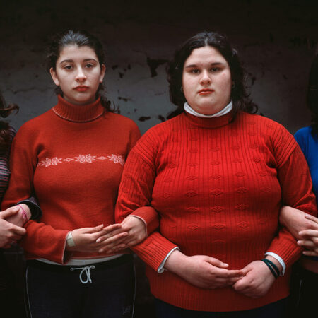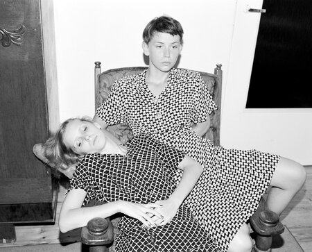 В серии «Frowst» Йоанна создает пространство, где семья показана через странную, почти театральную близость и повторение поз. На первый взгляд в этих фотографиях много напряжения и кажется будто запечатленным на них людям приходится играть роли, что не выглядит гармоничным в привычном смысле.