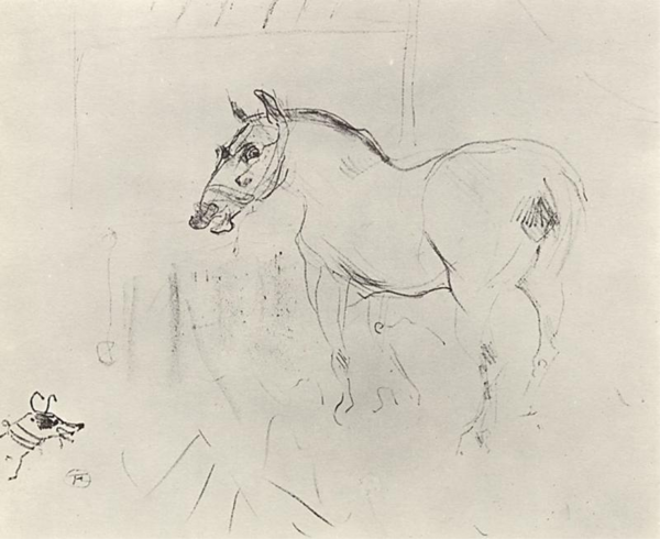 «Кальмез, его конь и его собака» Анри де Тулуз-Лотрек, 1898; «Маленький пони из Кальмеза» Анри де Тулуз-Лотрек, 1899