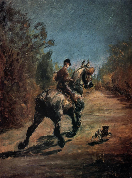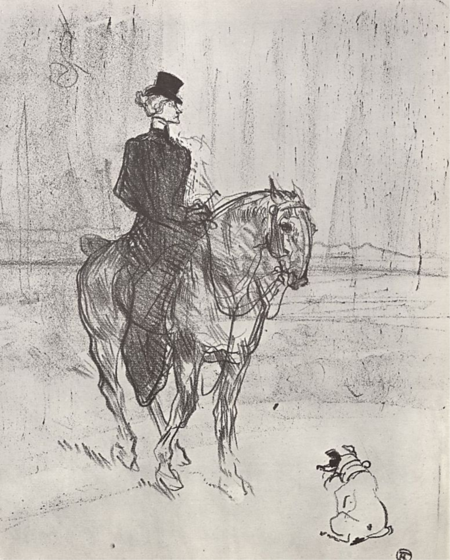 «Всадник с маленькой собачкой» Анри де Тулуз-Лотрек, 1879; «Всадница и собака» Анри де Тулуз-Лотрек, 1899
