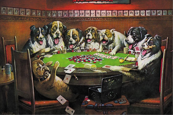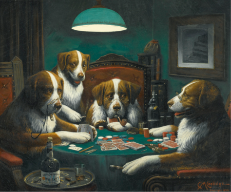 «Собаки, играющие в покер» Кассиус Маркеллус Кулидж, 1894; «Игра в покер» Кассиус Маркеллус Кулидж, 1894