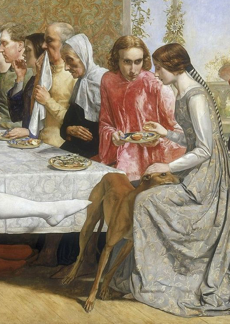 Продолжая традицию Возрождения, собаки появляются на картинах XIX века как символ преданности и верности. Так, например, на картине художника Джона Эверетта Милле «Изабелла», где изображён сюжет поэмы Джона Китса «Изабелла, или Горшок с базиликом» (по новелле Джованни Боккаччо «Декамерон»), художник изобразил момент, когда братья Изабеллы обнаруживают её роман с бедным подмастерьем Лоренцо.
