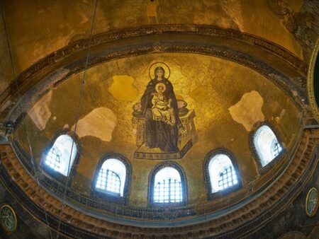 Контекст важен ещё и потому, что София пережила иконоборческий кризис, политические реформы и много раз меняла свой статус: из храма она становилась мечетью, затем музеем и снова мечетью. Всё это создало множество видимых исторических слоёв: например, фигуры, замазанные штукатуркой, мозаики, скрытые медальонами, и лишь фрагменты священных изображений. Каждый слой добавлял новые смыслы, делая Софию не просто зданием, а динамичным историческим документом.