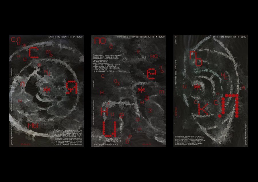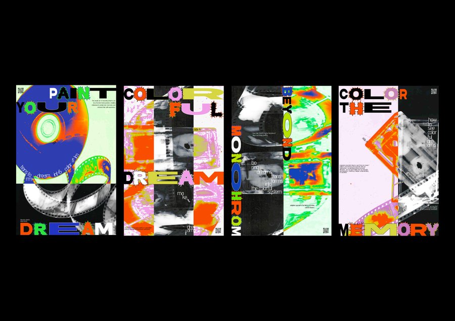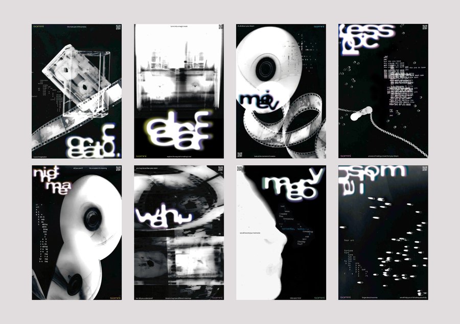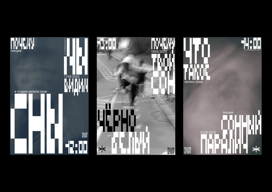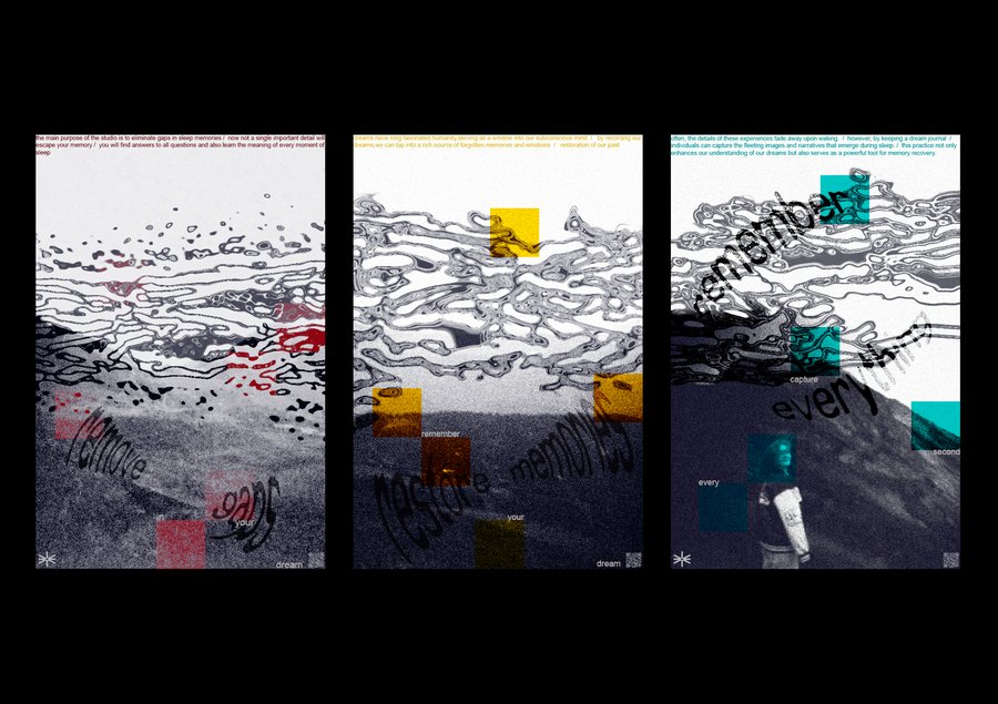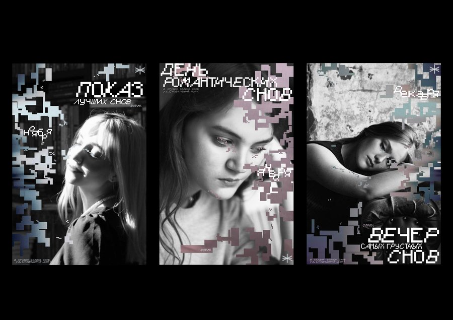 Каждая серия плакатов описывает виды снов, процесс их записи и мероприятия в студии.