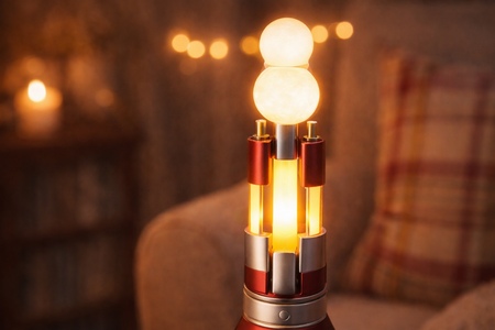 Сам объект представляет собой настольную лампу высотой около 25 см. Она комплектуется всем необходимым: LED-модулем, адаптером питания, подставкой. Корпус — из переработанного пластика. Настольный формат удобен тем, что не требует установки, так как его можно поставить на полку, стол или тумбочку. Для владельцев кафе, театров, галерей предлагается комплект из нескольких настольных ламп для оформления небольшого зала. Такие наборы будут рассчитаны на определенную площадь и будут включать выездную консультацию по световому сценарию. Возможна подборка и визуализация моделей под конкретные задачи.