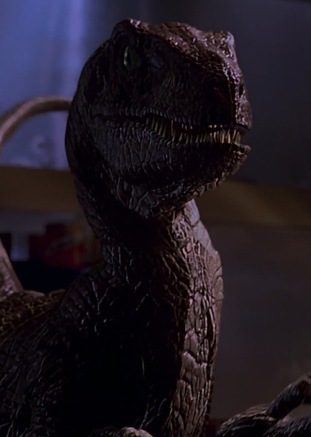 Для сцены рождения велоцираптора было создано восковое гнездо, изнутри покрытое окрашенным гелем и красной ниткой. Сам детеныш был марионеткой и управлялся палкой, которая была прикреплена к нему снизу. Человек сидел вне обзора камеры и толчками заставлял марионетку пробивать скорлупу.