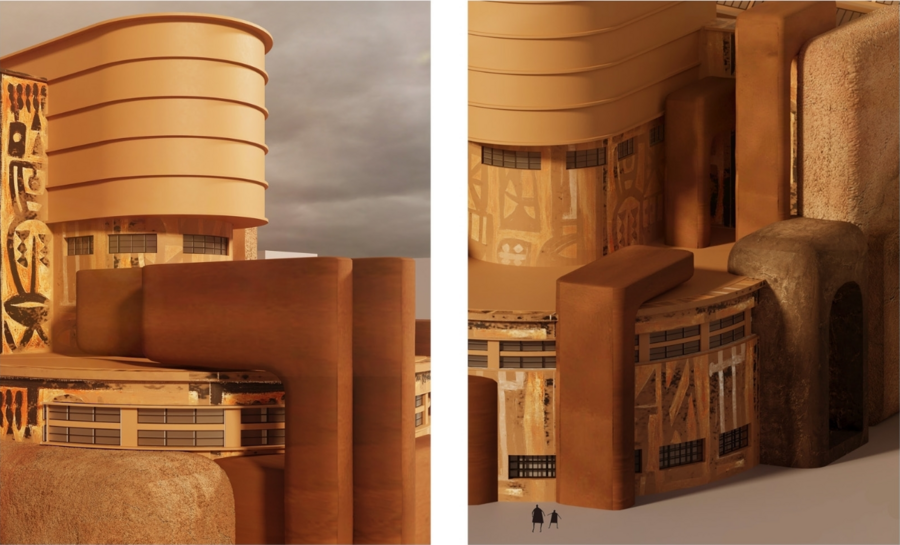Переосмысление прошлого проекта (https://portfolio.hse.ru/Project/250453#) Временные фасады к выставке «Диалог культур» в частную мастерскую по производству глиняных изделий в африканском стиле Пикассо.