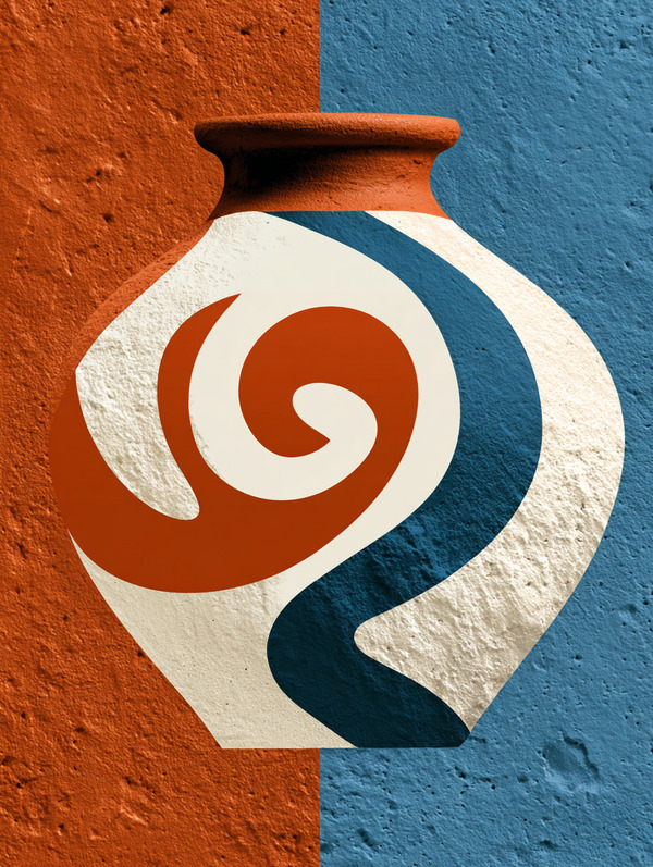 Промт для создания логотипа в Midjourney Bot: create a clay logo: an icon for the brand of a private workshop for the production of pottery in the African Picasso style, realistic, 4k. make it modern and expensive, 2D, use terracotta, white, blue colors. not voluminous, single.