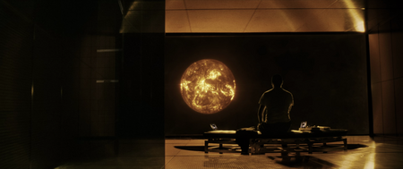 В «Sunshine» сюжет буквально завязан на полёте к умирающему Солнцу и попытке «перезапустить» его. Визуальный язык подстраивается под эту идею. Огромный солнцезащитный экран корабля превращается в кинематографическое окно, сквозь которое виден гигантский диск светила. При изменении интенсивности фильтров изображение переходит от относительно контролируемого жёлто-оранжевого круга к почти абстрактной световой стене. Камера начинает «ломаться» под воздействием яркости: появляются мощные ореолы, размытия, цветовые сдвиги, пересветы, которые используются не как ошибки, а как выразительные приёмы.