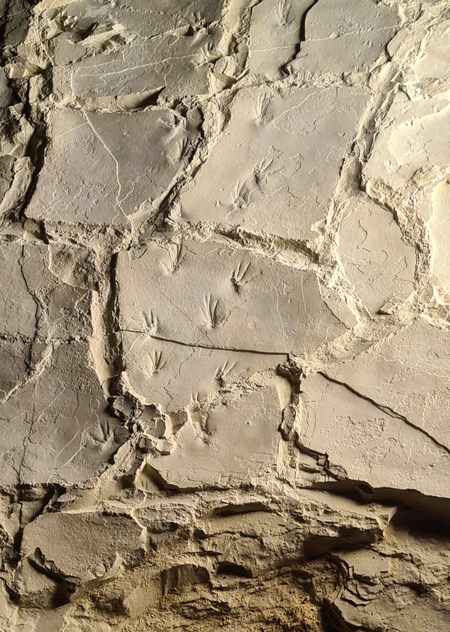 (1) Следы моа возле реки Манавату, Новая Зеландия; (2) Ископаемые следы птерозавров, пляж Птерозавров (Франция); (3) Тропа хищных тероподов недалеко от Энсисо, Ла-Риоха, Испания.