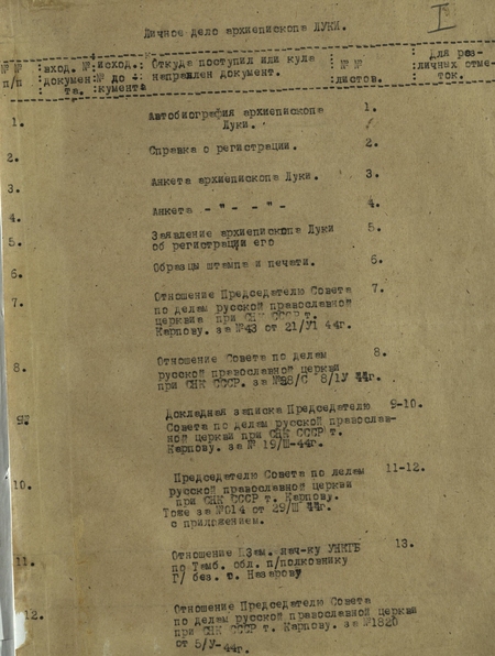 Обложка и содержание личного дела архиепископа Луки // 24 листа