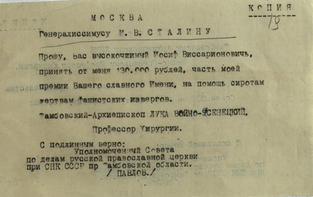 «Сообщаю, что Тамбовский архиепископ Лука продолжает проводить свои реакционные взгляды»