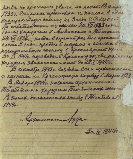 Рукопись автобиографии // архиепископ Лука // 30 апреля 1944