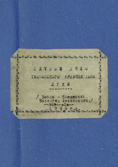 Личное дело на архиепископа Луку (профессора Войно-Ясенецкого) было заведено сразу по приезде в Тамбов и являлось засекреченным, поскольку велось сотрудниками НКВД.