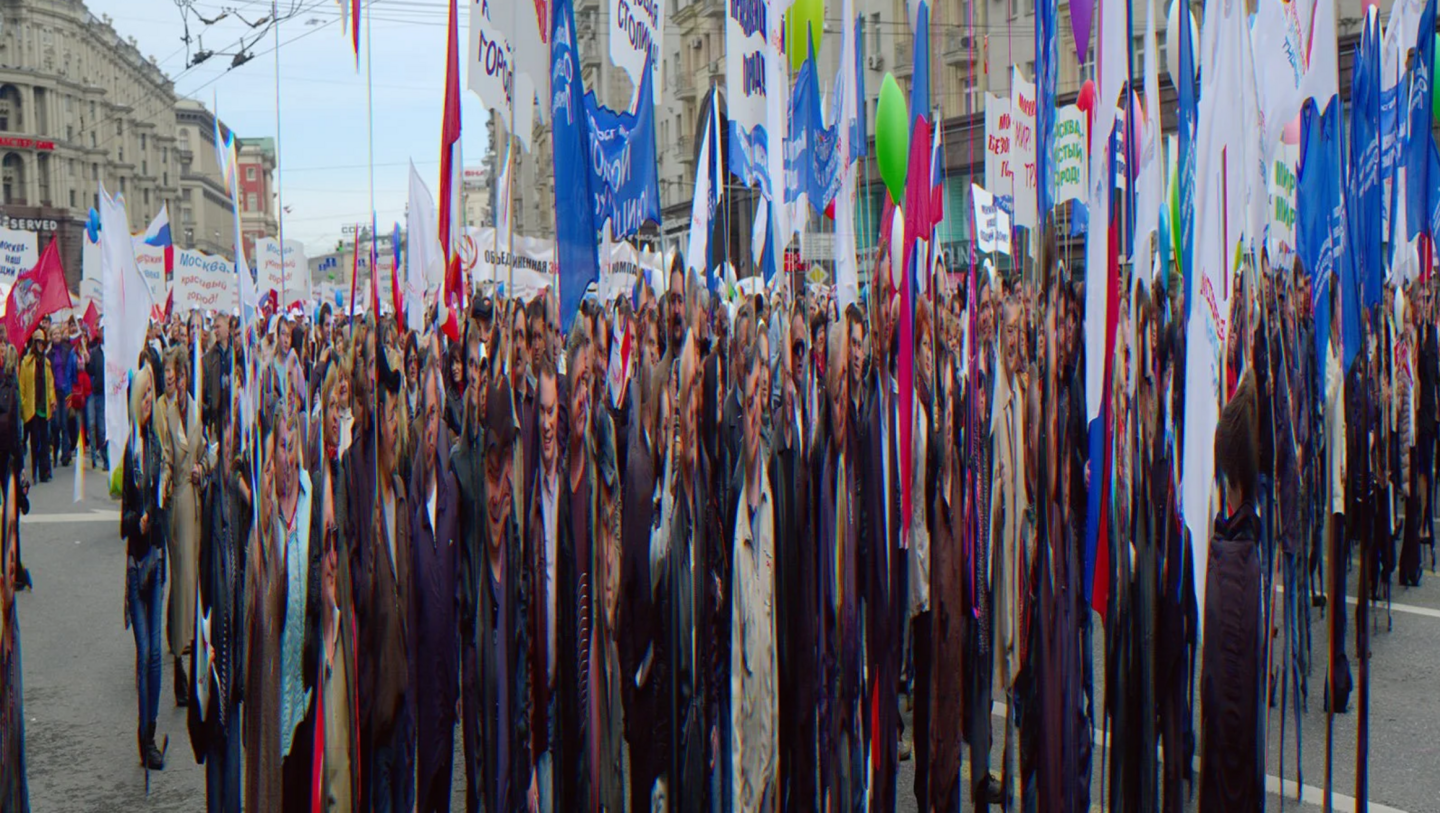 Шохов фиксирует не статичную толпу, а процесс её существования во времени. Размытые, лишённые индивидуальности силуэты создают образ толпы как единой, «окаменевшей» массы, в которой индивидуальное движение и время субъекта растворяются. Техническая «остановка» мгновения здесь оборачивается метафорой социального ступора — «зависания» в самом эпицентре, казалось бы, самого живого и динамичного события.