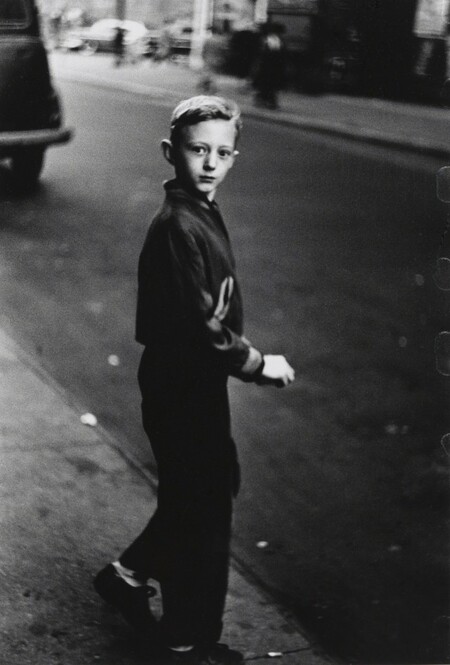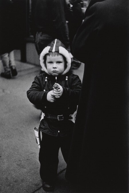 Диана Арбус работает прямо в той же плоскости, что и Салли Манн и Хайн, но её стратегия иная: если Манн создаёт интимные, семейные хроники, а Хайн документирует социальную несправедливость, то Арбус выискивает в городской жизни фрагменты, где детство встречается с чуждостью, угрозой и театром. Её фотографии становятся схваченными моментами, в которых игровой атрибут или детская поза вдруг становятся символом чего-то более тревожного.