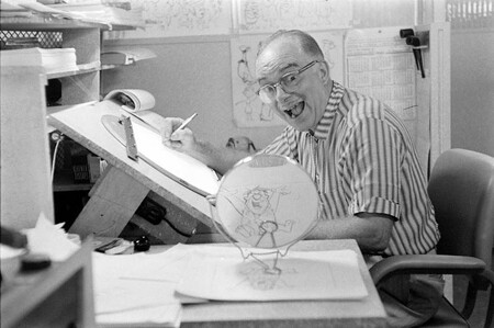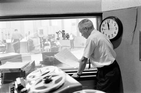 Аниматор Карло Винчи разыгрывает сцену. Билл Ханна курирует создание саундтрека.