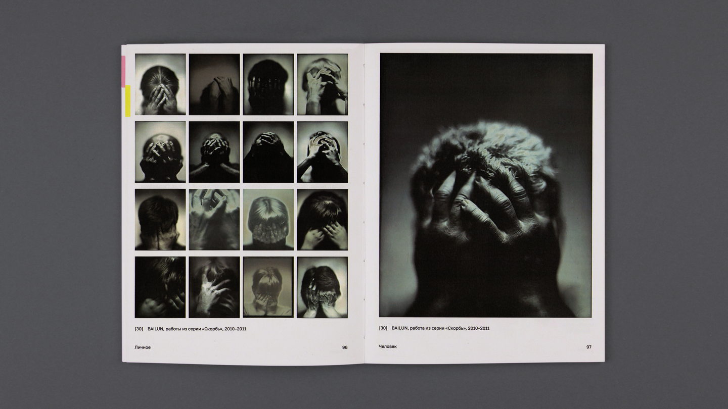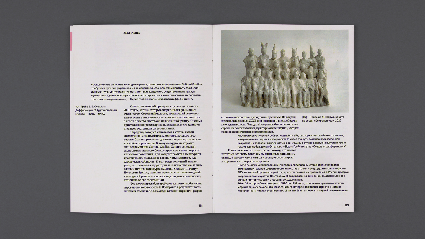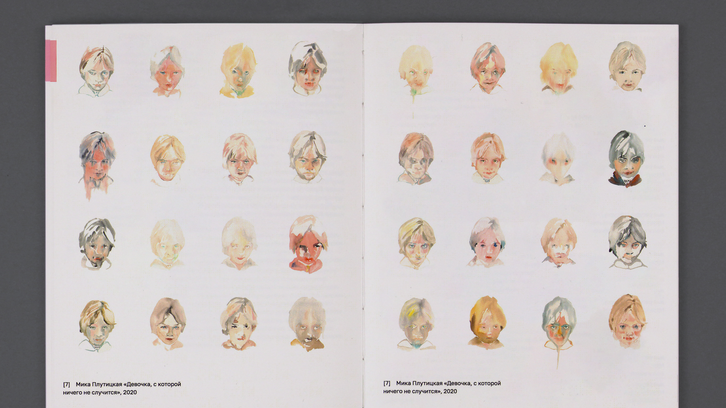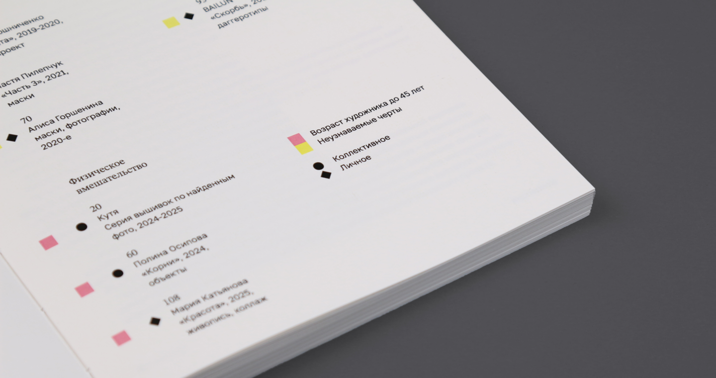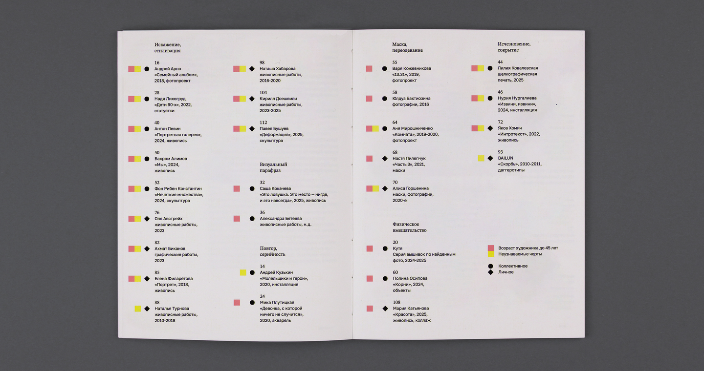 Разворот с информацией о проекте и художнике; разворот с продолжением работ и вводным текстом следующей подглавы