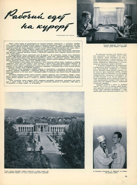 Журнал «Советский Союз», № 7 за 1953 год. Сюжет о молодом шахтёре Николае Водешкине, отправившегося на отдых в курорт Цхалтубо