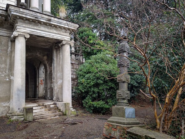 Покосившиеся, полуразрушенные части санатория «Чайка» им. Орджоникидзе, Сочи, 2021 г. Фотографии Ивана Новикова