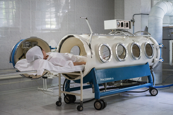 Санаторий «Аврора», Киргизия, 2016 г. Фото Михаила Соларски // Аппарат для гипербарической оксигенации, 2016 г. Фото Дмитрия Лукьянова