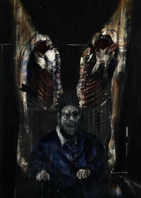 Мясо — вторая «муза» художника. Исходя из многочисленных интервью, его вдохновляет форма туши убитого животного, которая свисает с мясного крюка. Сухожилия, рёбра и мясо — всё это обильно присутствует в картинах Фрэнсиса Бэкона.