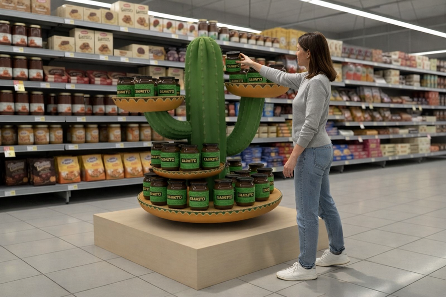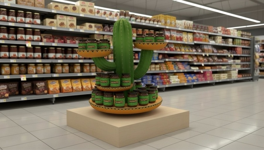 VARRITO — российско-мексиканский бренд безвредных сладостей, специально для которого был разработан кастомный ПОСм под главный продукт — варенье в стилистике VARRITO, передающий мексиканский колорит и общую эстетику бренда.