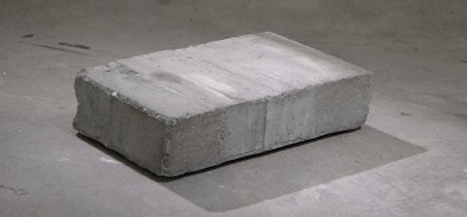 В работе «Энтьерро» Маргалльо использует бетонный блок, внутри которого — невидимое зрителю — находится тело умершего человека. Инсталляция выглядит как холодный, индустриальный объект, почти инженерная конструкция: серый, безличный, геометричный — наследие традиции авангарда. Однако внутри него заключено нечто максимально человеческое — след смерти, телесности, утраты. Произведение одновременно напоминает элемент утилитарной архитектуры и погребальную урну.