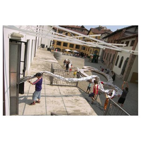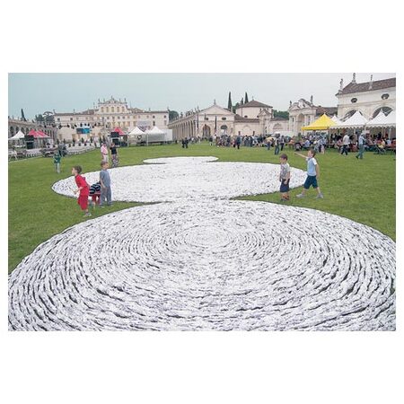 Проект художника Микеланджело Пистолетто «Third Paradise» — это не объект, а методика культурного производства, распространяемая через институты, школы, городские инициативы. Художник предлагает свой фирменный знак, который становится платформой для социальных, экологических, образовательных проектов. Проект существует в виде коллективных построений знака из мусора, людей, природных материалов.